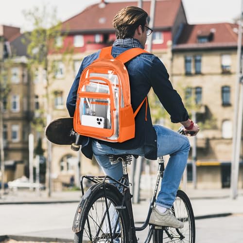Clear Backpack, Heavy Duty PVC Transparent Backpack with Reinforced Straps, See Through Multiple Pockets Large Capacity Bookbag for Concert Work Security Travel Festival (Orange) 5