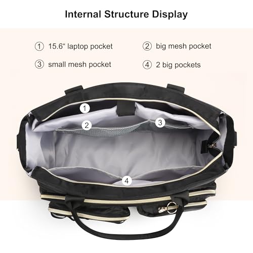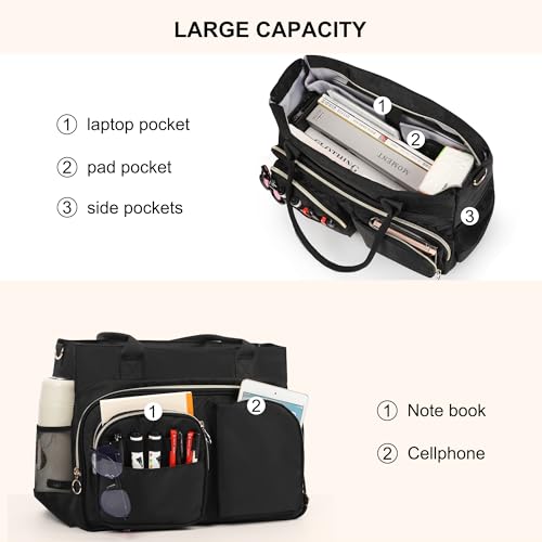 HOT ! Laptop Tote Bag for Women, 15.6-Inch Teacher Tote Bag with Compartments, Lightweight Nurse Work Bag with Detachable Strap, Black Shoulder Bags for Travel, College, Business Trip