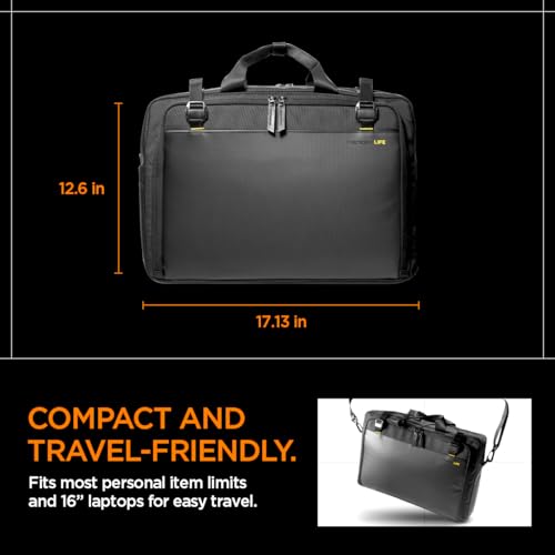 • Spacious & Organized Storage: Business bag features YKK dual-zipper access with multiple compartments and a padded laptop sleeve that fits up to a 16” laptop; bag includes a built-in pen holder, carabiner, and AirTag pocket to keep your essentials organized and secure