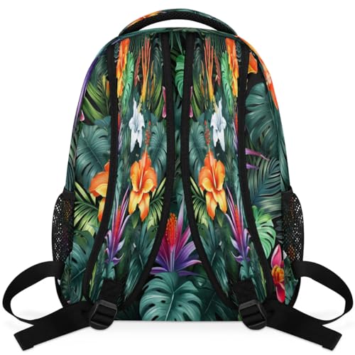 Tropical Flowers Palm Leaves Lightweight Backpack for Women Men Laptop Travel Backpack Casual Daypack Multi-Purpose Backpacks Waterproof Large Backpack Bag 1