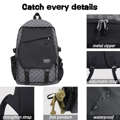 Teclado Fashion Backpack Checkered Casual Bookbags Lightweight Laptop Bag Outing Travel Daypacks (Brown) 6