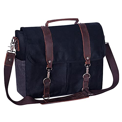 More information about Mens Messenger Bag Waterproof Vintage Genuine Leather Waxed Canvas Briefcase Large Satchel Shoulder Bag Laptop Bag