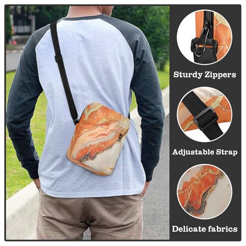 Orange and Gold Marble Texture messenger bag Small Crossbody Bag Women Woman Shoulder Handbags Adjustable Strap for Travel Outdoor Daily 7
