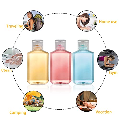 Frcctre 60 Pack 2 Oz Empty Clear Plastic Travel Bottles, Portable Refillable PET Bottles with Flip Top Caps, Travel Size Containers for Hand Sanitizer Shampoo Lotion Toiletry 7