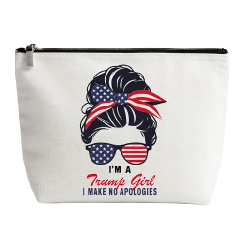 HOT ! Trump Merchandise Makeup Bag MAGA 47 Trump Inauguration Party Supplies Gifts for Women, Cosmetic Pouch Match with Donald T Shirt or Hat, I'm A Trump-Girl Get Over It & No Apologies Print