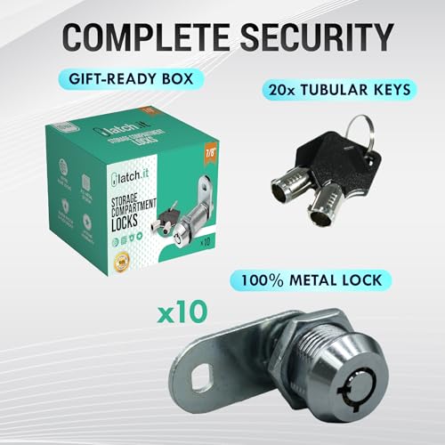 • EACH KIT ARRIVES READY TO INSTALL AND INCLUDES 10x RV Cabinet Locks, 20x Tubular Cam Lock Keys, Gif-Ready Premium Packaging, Locking Nut, Locking Washers & Waterproofing O-ring. SAVE MONEY by not having to buy extra keys & INSTALL it within 5-MINUTES! All 100% backed by our LIFETIME warranty and 24/7 Online Support. MAKE SURE DIMENSIONS FIT YOUR APPLICATION.