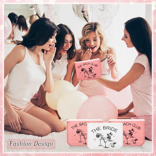 • The Bach Club Makeup Bag: you will get 10 bachelorette bags, 9 of which are pink, and 1 is white; Celebrate your special day with our Custom Bachelorette Gift Bags for Bridesmaids, designed to add a personalized touch to your bridal party; These practical and elegant bags are the ideal way to show your appreciation to your bridesmaids
