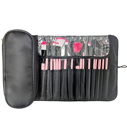 • Large capacity: The portable travel bag has 12 cosmetic brush bags and a small zipper bag (you can place items on both sides when opened), which can accommodate more than 20 different sizes (maximum 8.66 inches) of cosmetic brushes and other cosmetics.