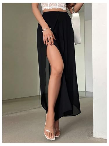 Women's Y2k Split Wide Leg Wrap Long Pants Straight Leg Loose FIt Sheer Long Trousers 1