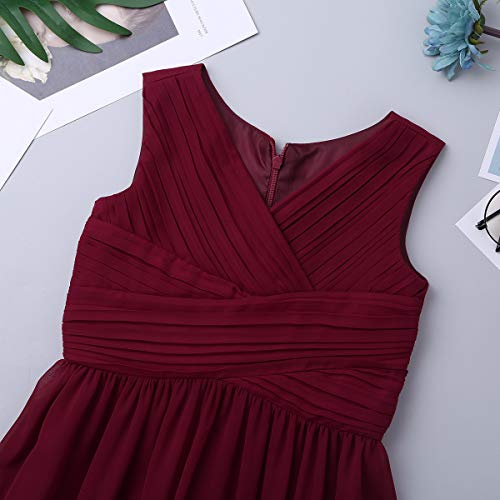 FEESHOW Big Girls Floral Lace Dress Chiffon Junior Bridesmaid Wedding Party Long Prom Gowns 6