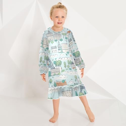 Cartoon Eiffel Tower Girls Long Sleeves Dress, Winter Dresses Nightgowns Casual Swing Dress 6