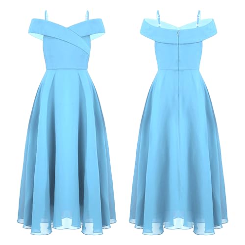 Kids Flower Girls Dress Spaghetti Strap Off Shoulder Chiffon Bridesmaid Dress A Line Formal Long Gown 6