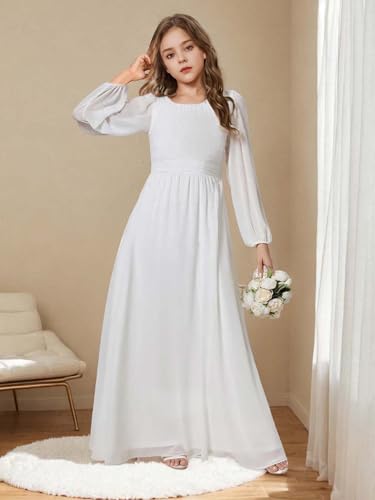 Junior Bridesmaid Dresses Long Lantern Sleeves Chiffon Flower Girl Dress First Communion Gown Dusty Rose 11 4