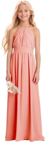 Topsta Junior Bridesmaid Dresses for Teen Girls Halter Chiffon Flower Girl Dress Sleeveless Girls Formal Pageant Dress 4