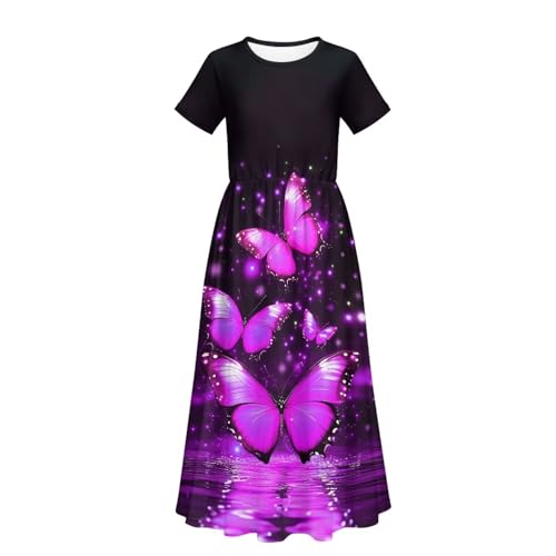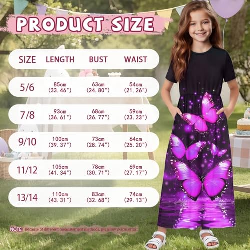 Girl's Short Sleeve Long Dress Loose Casual Maxi Dresses with Pockets CEW Neck A-Line Dress for 5-14 Years 6