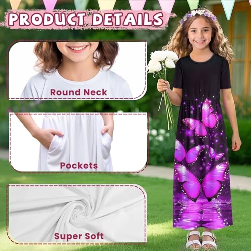Girl's Short Sleeve Long Dress Loose Casual Maxi Dresses with Pockets CEW Neck A-Line Dress for 5-14 Years 7
