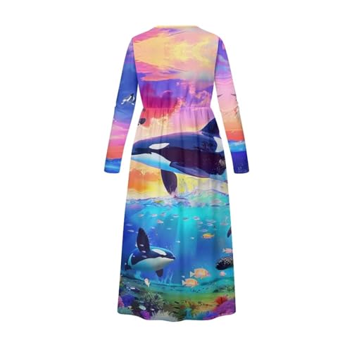 Girls Dresses Size 5-14 Maxi Dresses Kids A Line Party Dress with Pockets Fall Long Sleeve 5