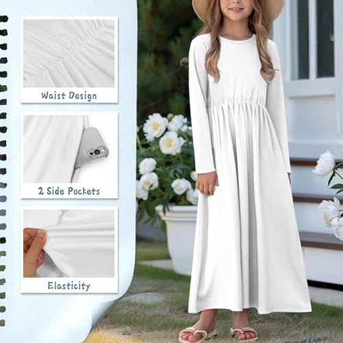 Girls Dresses Size 5-14 Maxi Dresses Kids A Line Party Dress with Pockets Fall Long Sleeve 4