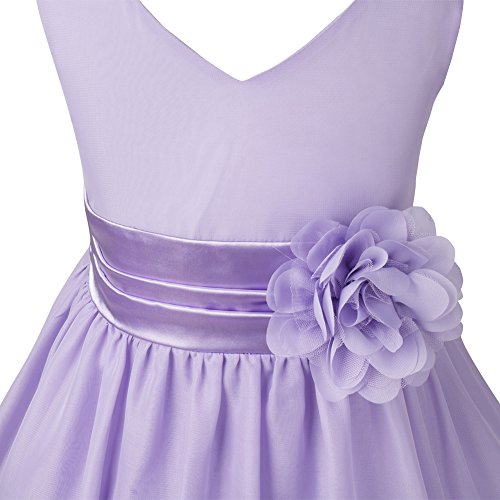 Kids Girls Flower Girl Chiffon Bowknot Back Sleeveless V-Neck A-line Wedding Dress Party Dress 5