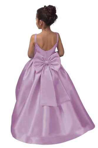 More information about Satin Flower Girl Dress for Wedding Spaghetti Strap Backless Princess Ball Gown First Communion Dress with Bow