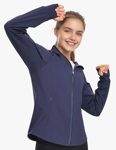 JOCMIC Girls Light Rain Jacket with Hood, Lightweight Athletic Jackets for Outdoor Sports Running Golf Hiking 6