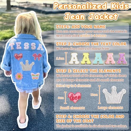 Personalized Kids Denim Jackets for Girls, 1-8 Year Old Girl Boy Birthday Gift, Baby Toddler Easter Basket Stuffers, Toddlers Jean Jacket with Names Clothes, Back to School Outfits 4
