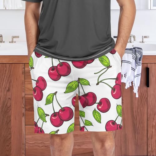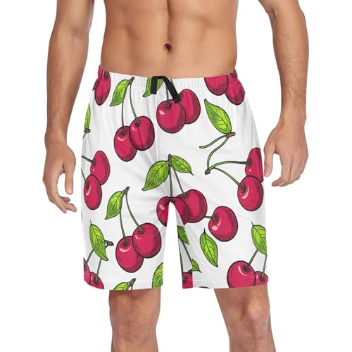 Cherries Leaves White Pajama Shorts for Men Lounge Pants Sleep Lounge Short Men's Separate Bottoms with Pockets, S-XXL 1