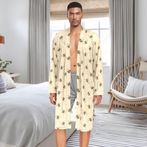 Men's Bee Robes Lightweight Long Sleeve Kimono Bathrobe Soft Sleepwear Loungewear with Pocket 1