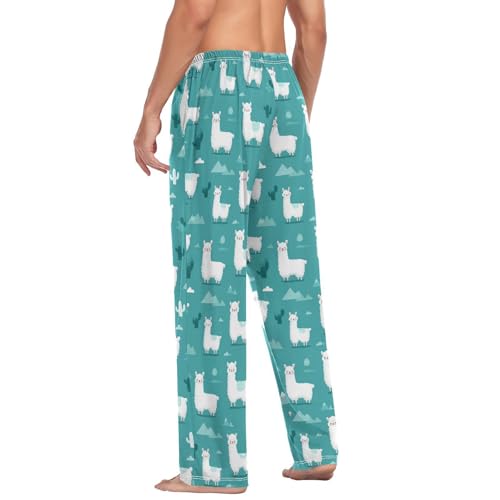 Vdsrup Men's Pajama Pants Cute Alpaca Green Pajama Pants for Men PJs Bottoms Drawstring Pockets Sleep Lounge Pants S 6