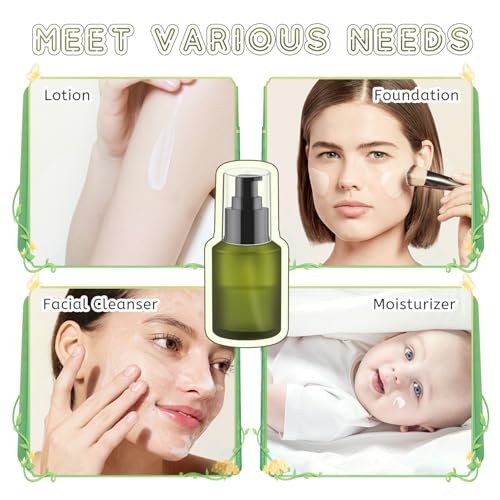 4 Pcs 60ml/2oz Green Frosted Glass Bottles Refillable Pump Dispenser Jar Empty Lotion Vials with Pump for Travel Body Wash Liquid Foundation Cosmetic Samples 5