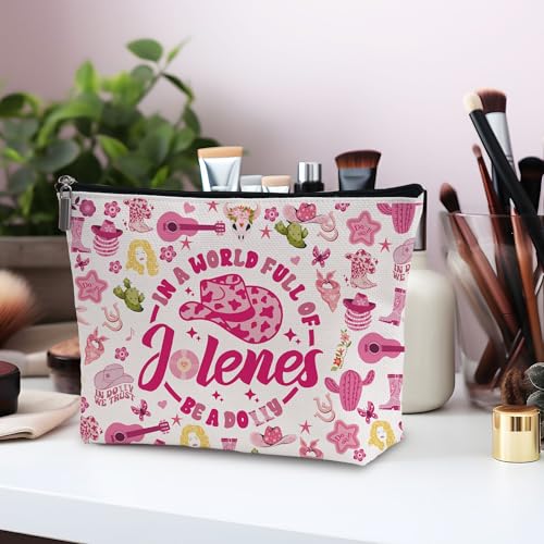 HOT ! Pink Cowgirls Makeup Bag, Country Music Lover Gift Silky Lining Cosmetic Pouch, Western Country Pink Dolly Theme Gift for Women Country Music Fans