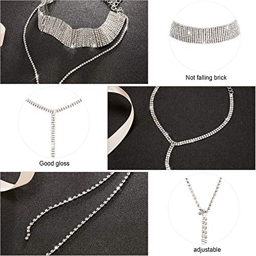 3 Pieces Layered Necklace Rhinestone Layered Double Crystal Fashion Multilayered Long Choker Necklaces Rhinestone Jewelry Choker Chains for Women and Girls 6