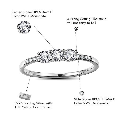 LAVALE Round Cut Moissanite Wedding Band for Women, Brilliant D Color VVS1 Clarity Classic Lab Created Diamond Solitaire Ring 18K White Yellow Rose Gold Vermeil 4 Claw Knife Edge Moissanite Rings 3
