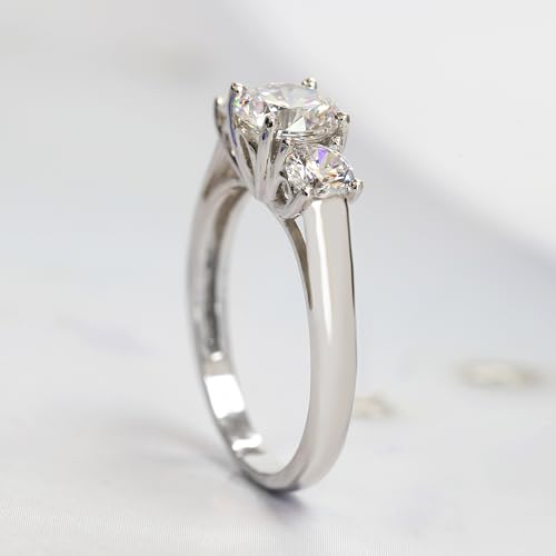 DoubleAccent Sterling Silver Rhodium Plated, Wedding Ring Round CZ Three Stone Engagement Ring 5