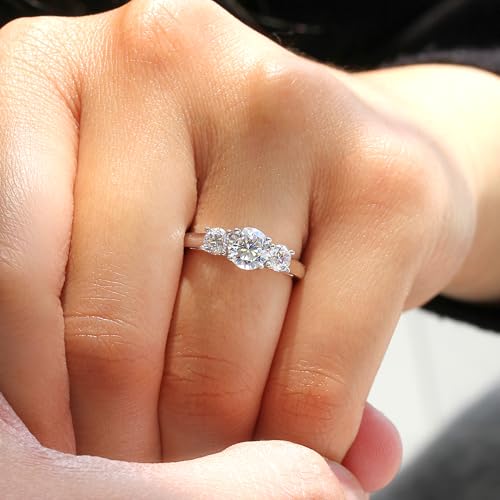 DoubleAccent Sterling Silver Rhodium Plated, Wedding Ring Round CZ Three Stone Engagement Ring 3