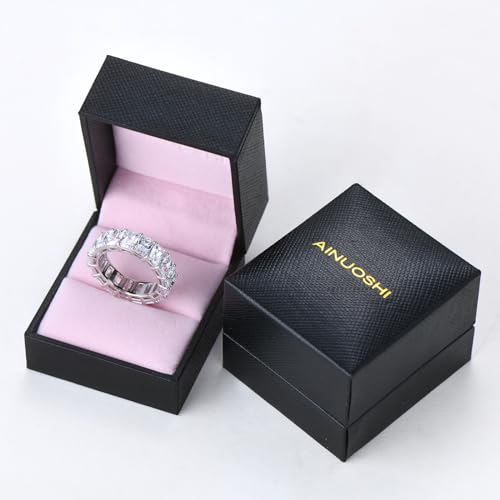 HOT ! AINUOSHI Eternity Ring, 925 Sterling Silver Ring for Women, Emerald/Oval/Radiant/Round/Cushion Cut Cubic Zirconia CZ Fine Ring, Eternity Engagement Wedding Band Ring, Jewelry Box Packed