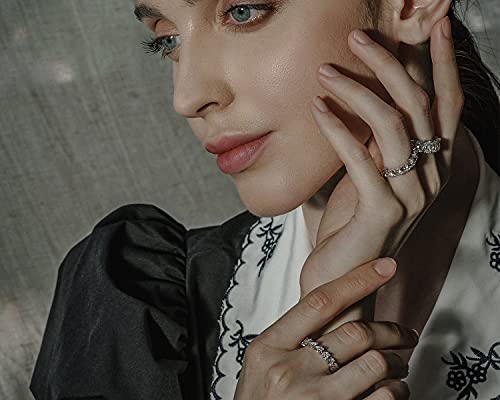 AINUOSHI Eternity Ring, 925 Sterling Silver Ring for Women, Emerald/Oval/Radiant/Round/Cushion Cut Cubic Zirconia CZ Fine Ring, Eternity Engagement Wedding Band Ring, Jewelry Box Packed 3