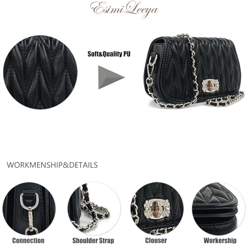 Quilted Handbags for Women with Chain Strap Shoulder Bags Trendy Compact Small Purses 4
