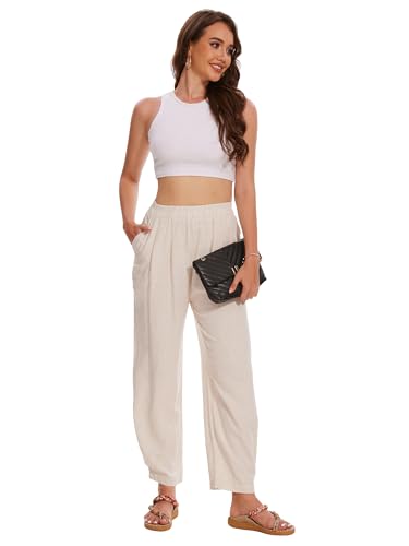 Moss Rose Women's Linen Pants High Waisted Straight Palazzo Casual Trousers with Pockets 1