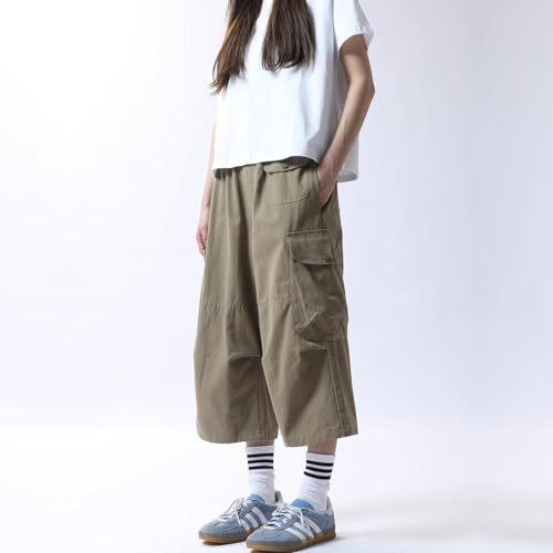 More information about Women's Cargo Capri Pants Baggy Knee Length Long Wide Leg Button Waist Y2K Shorts Summer Casual