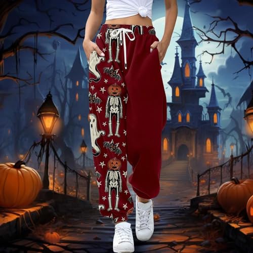 Women Halloween Sweatpants 2025 High Waisted Cinch Bottom Sporty Active Joggers Pants Baggy Lounge Bottoms Pockets 2