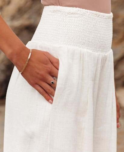 Sufficientn Palazzo Pants, Women's Smocked Waist Wide Leg Palazzo Pants, Leg High Waisted Lounge Linen with Pockets 5