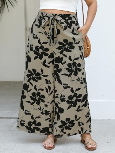 More information about CUPSHE Women's Plus Size Wide Leg Pants High Elastic Waist Adjustable Knot Casual Flowy Trousers with Pockets
