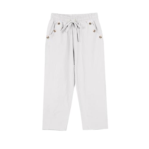 HOT ! Capris Pants for Women Cute Lightweight Summer Linen Drawstring Elastic Waist Pull On Cropped Pants with Pockets