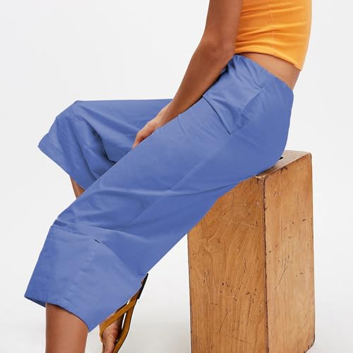 Songling Womens Capri Pants Loose Fit Mid Rise Wide Leg Croped Cuff Pants Casual Palazzo Trousers with Pockets 5