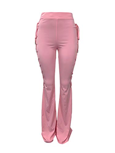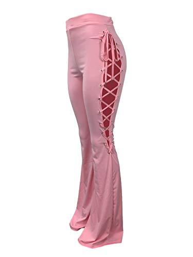 More information about KIRJAUDU Women's Flare Pants Solid Color Side Criss Cross Lace Up Floor Length Bell Bottom Pants