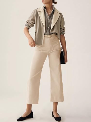 More information about Cicy Bell Womens Cropped Wide Leg Pants High Waisted Stretchy Flare Pants Casual Baggy Trousers Beige
