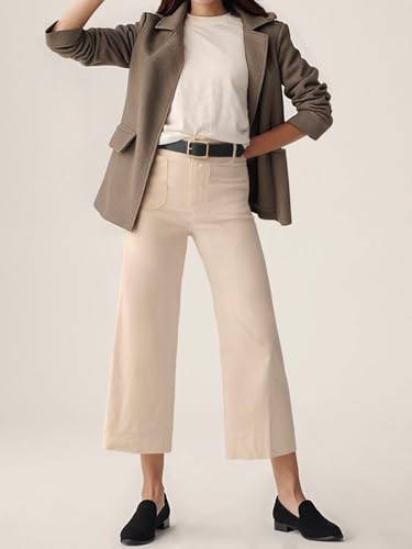 Cicy Bell Womens Cropped Wide Leg Pants High Waisted Stretchy Flare Pants Casual Baggy Trousers Beige 1