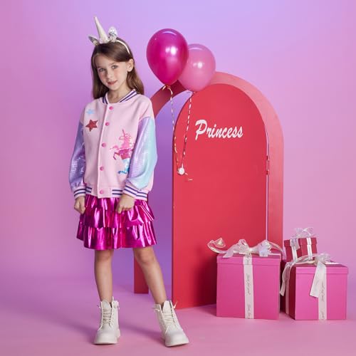 DXTON Girls Baseball Bomber Jacket Zip/Button Sweatshirt Fall Winter Outwear Coat for Kids Toddler 3-12 Years 6