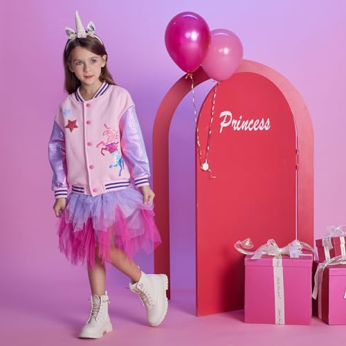 • 【FEATURES】DXTON Girls Jackets feature Zipper/Button up, Baseball Collar, Mermaids/Unicorn printed, Patchwork Long Sleeve, Drop Shoulder, Elastic Ribbed Cuff, Ribbed Waist, Casual Lightweight Varsity Jacket, Toddler Girl Sweatshirt, Girls Bomber Jacket, Kids Winter Coats, Girls' Outerwear Jackets & Coats.